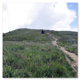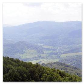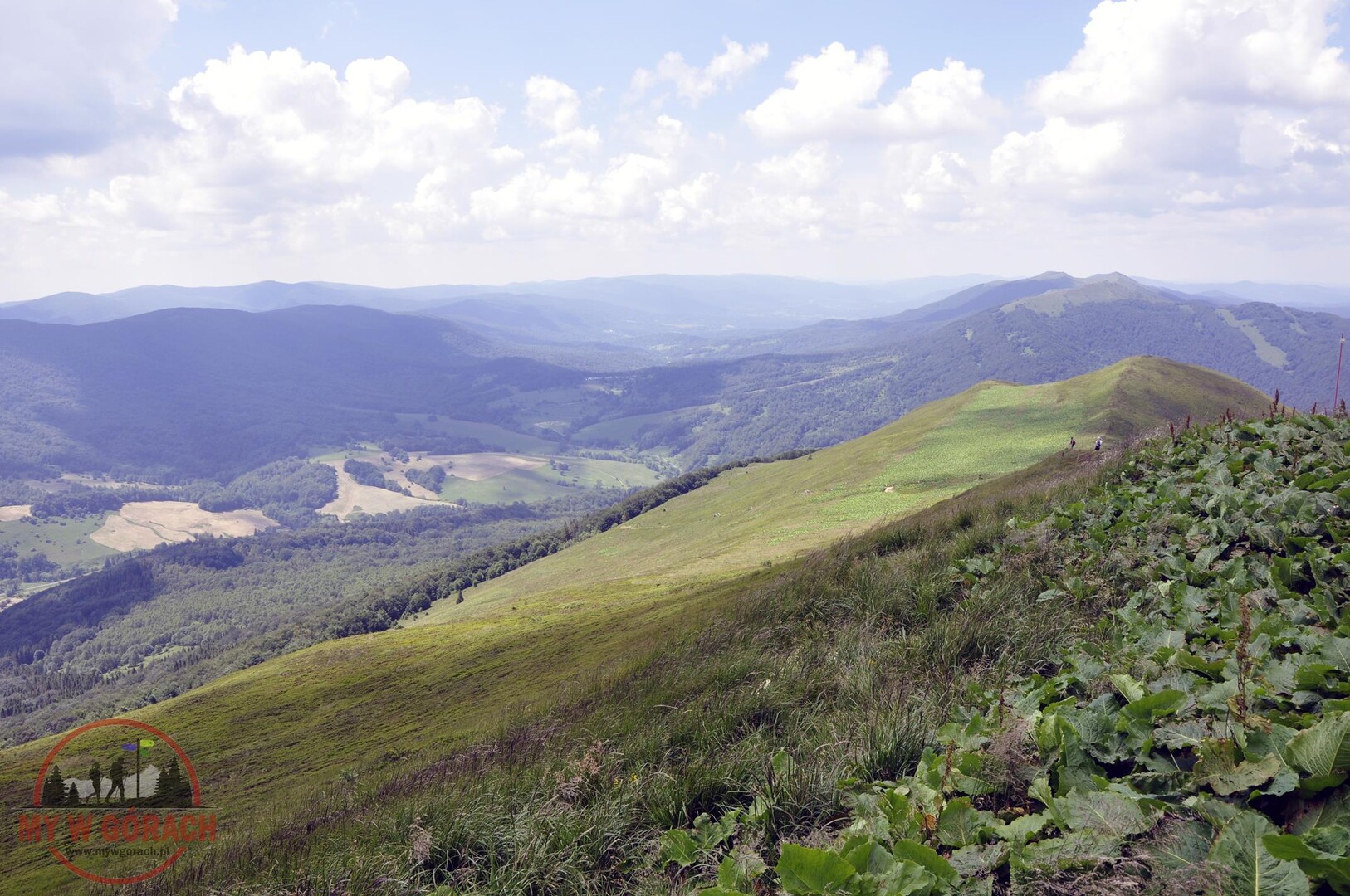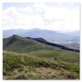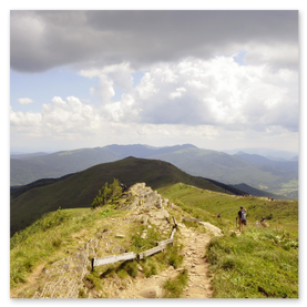 Po wyjściu na otwartą przestrzeń połoniny szlak się wypłaszcza i pojawiają się pierwsze widoki. Od teraz wędrówka robi się naprawdę przyjemna po mimo świadomości jeszcze jednego ostrego podejścia już na właściwy grzbiet Połoniny Caryńskiej. Po jego pokonaniu dochodzimy do tarasu widokowego na wysokości 1234 m n.p.m. z kąt rozpościera się wspaniały widok na Bieszczczady.