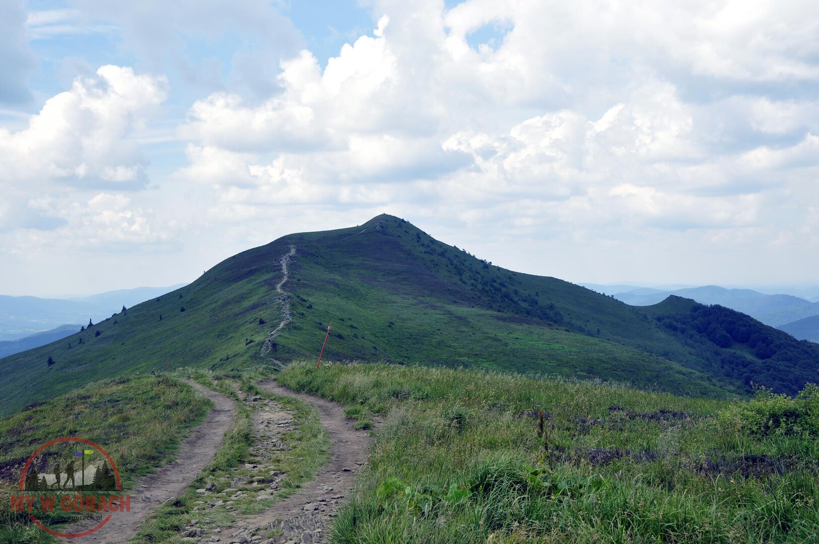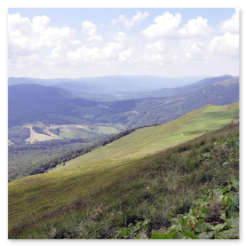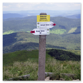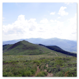 Po wyjściu na otwartą przestrzeń połoniny szlak się wypłaszcza i pojawiają się pierwsze widoki. Od teraz wędrówka robi się naprawdę przyjemna po mimo świadomości jeszcze jednego ostrego podejścia już na właściwy grzbiet Połoniny Caryńskiej. Po jego pokonaniu dochodzimy do tarasu widokowego na wysokości 1234 m n.p.m. z kąt rozpościera się wspaniały widok na Bieszczczady.