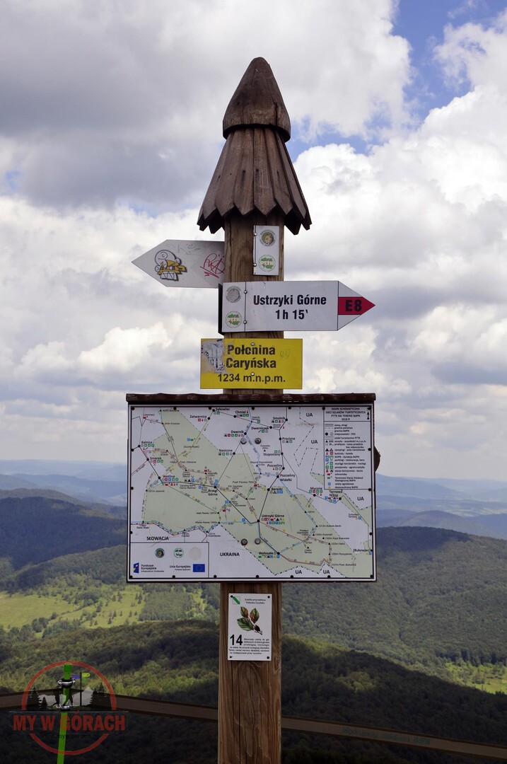 Panorama z Połoniny Caryńskiej jest rozległa, z dobrze widocznym masywem Wielkiej Rawki, Połoniny Wetlińskiej i grupą najwyższych szczytów polskich Bieszczadów z Tarnicą i Haliczem. Przy bardzo dobrej przejrzystości powietrza, z połoniny- my nie mieliśmy tyle szczęścia- zobaczyć można odległe o ponad 100 km ukraińskie Gorgany, czy odległe o blisko 180 km Tatry.